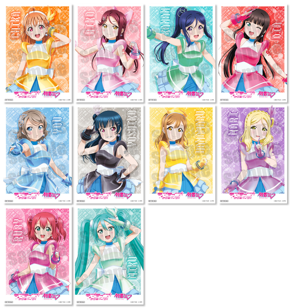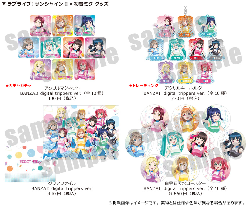 通販サイトでは、ラブライブ!サンシャイン!!×初音ミク」BANZAI! digital trippersのイラストを使用した新商品を含む、商品金額合計3,300円(税込)のご注文ごとにブロマイドを1枚ランダムでお付けいたします。
