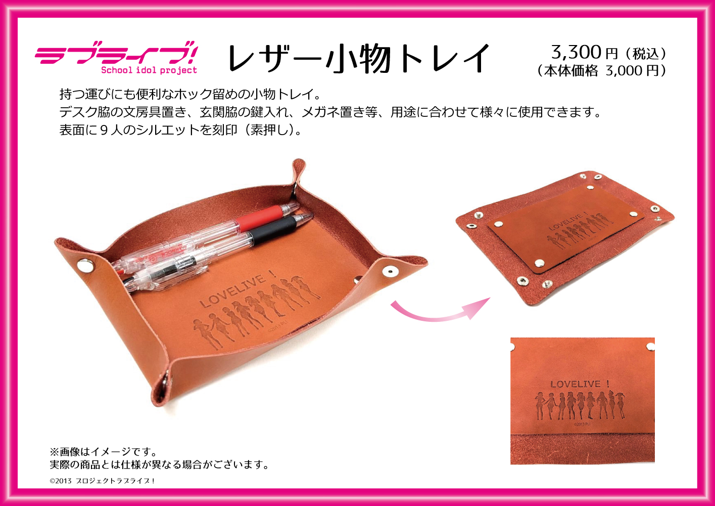 劇中衣装、楽曲衣装、メンバーカラーなど様々にイメージを膨らませながら、レザーグッズを楽しんで作成できます。