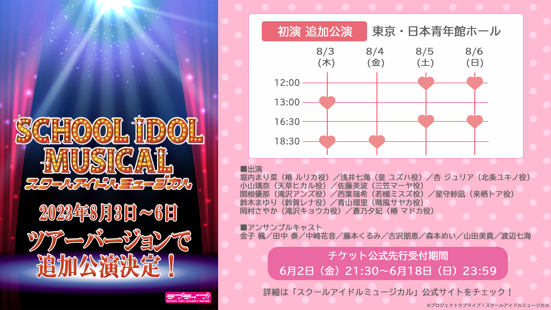2022年12月に新国立劇場 中劇場、今年1月に梅田芸術劇場 メインホールにて上演したラブライブ!シリーズ初のミュージカル「スクールアイドルミュージカル」の追加公演が決定いたしました!