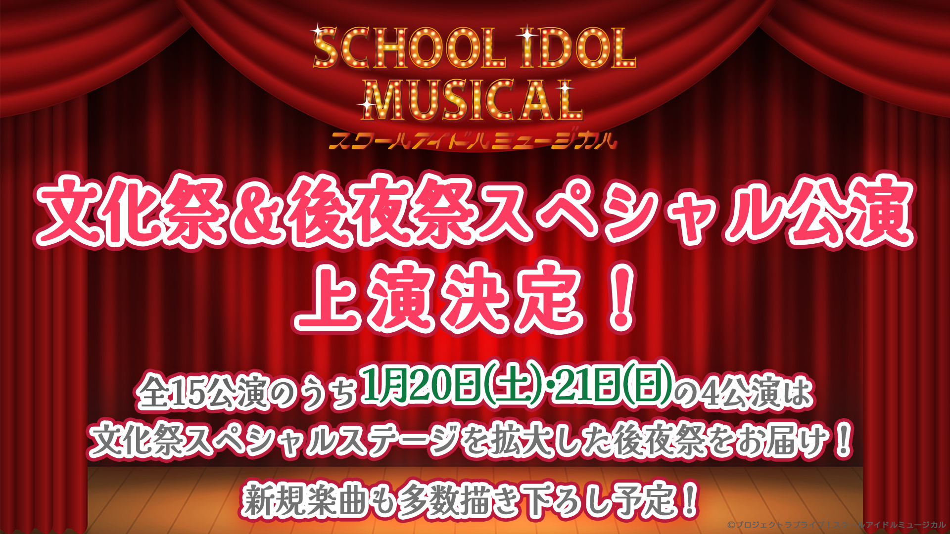 本公演からの新たな取り組みとして、1月19日(金)の『スクールアイドルミュージカル』千穐楽後、1月20日(土)・21日(日)に『スクールアイドルミュージカル』~文化祭&後夜祭スペシャル公演~を上演します!