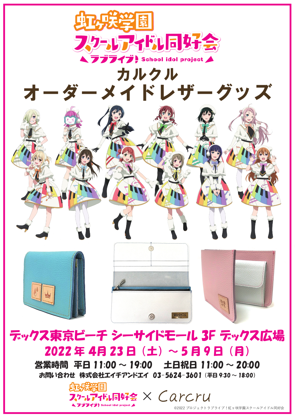 2022年4月23日(土)よりデックス東京ビーチ シーサイドモール3Fデックス広場にて、「ラブライブ!虹ヶ咲学園スクールアイドル同好会」コラボオーダーメイドレザーグッズのご注文受付を開催しております!