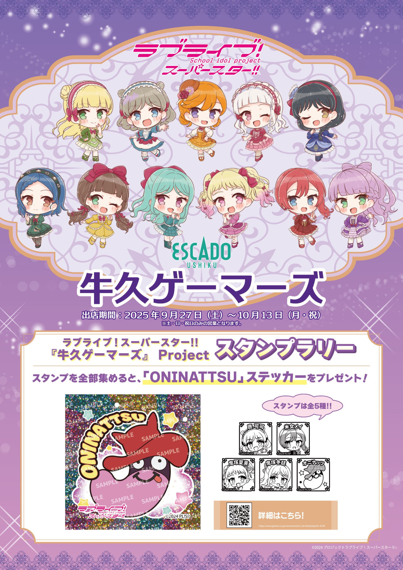 また、10月4日から開催の「ラブライブ!スーパースター!!」りらっくすないとふぇあの開始日より、りらっくすないとふぇあイラスト商品のご購入ご会計毎に牛久ゲーマーズ限定ブロマイド(1種)をプレゼントいたします。