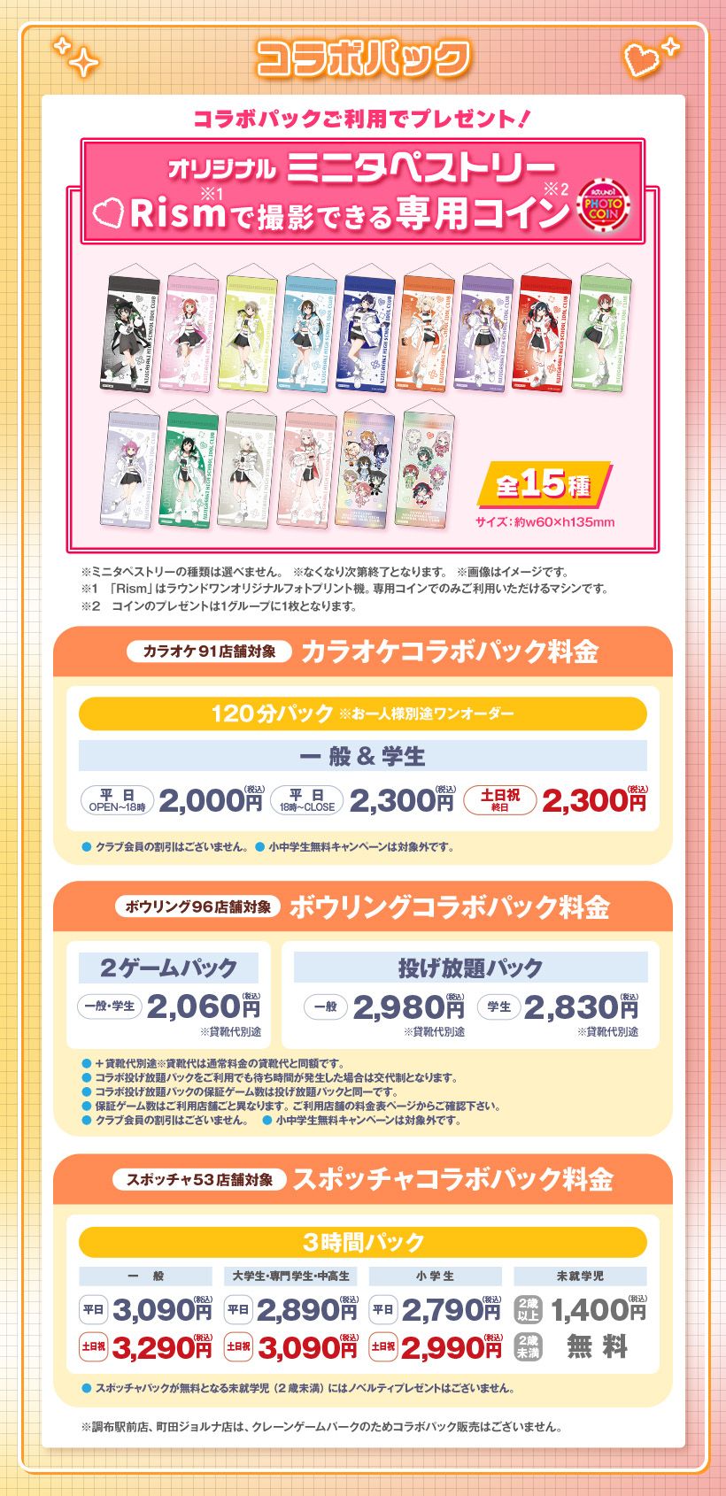 コラボ限定特典が付いたカラオケパック、ボウリングパック、スポッチャパックを販売いたします。
