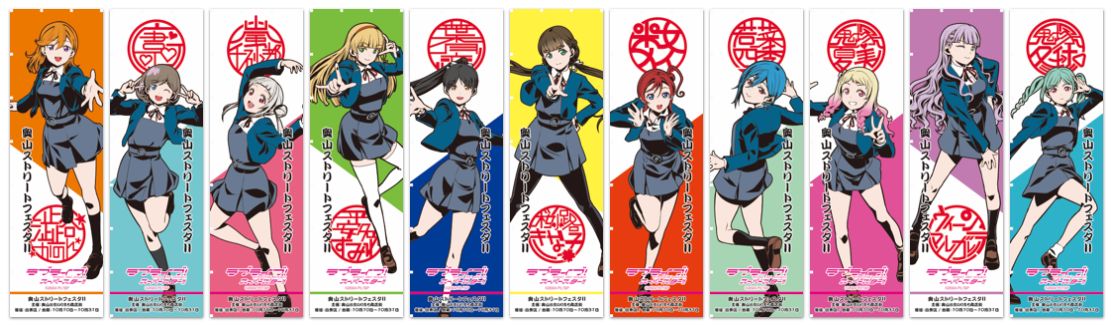 掲示されるのはLiella! メンバー11人の描きおろしイラストを使った特製のぼり旗です。