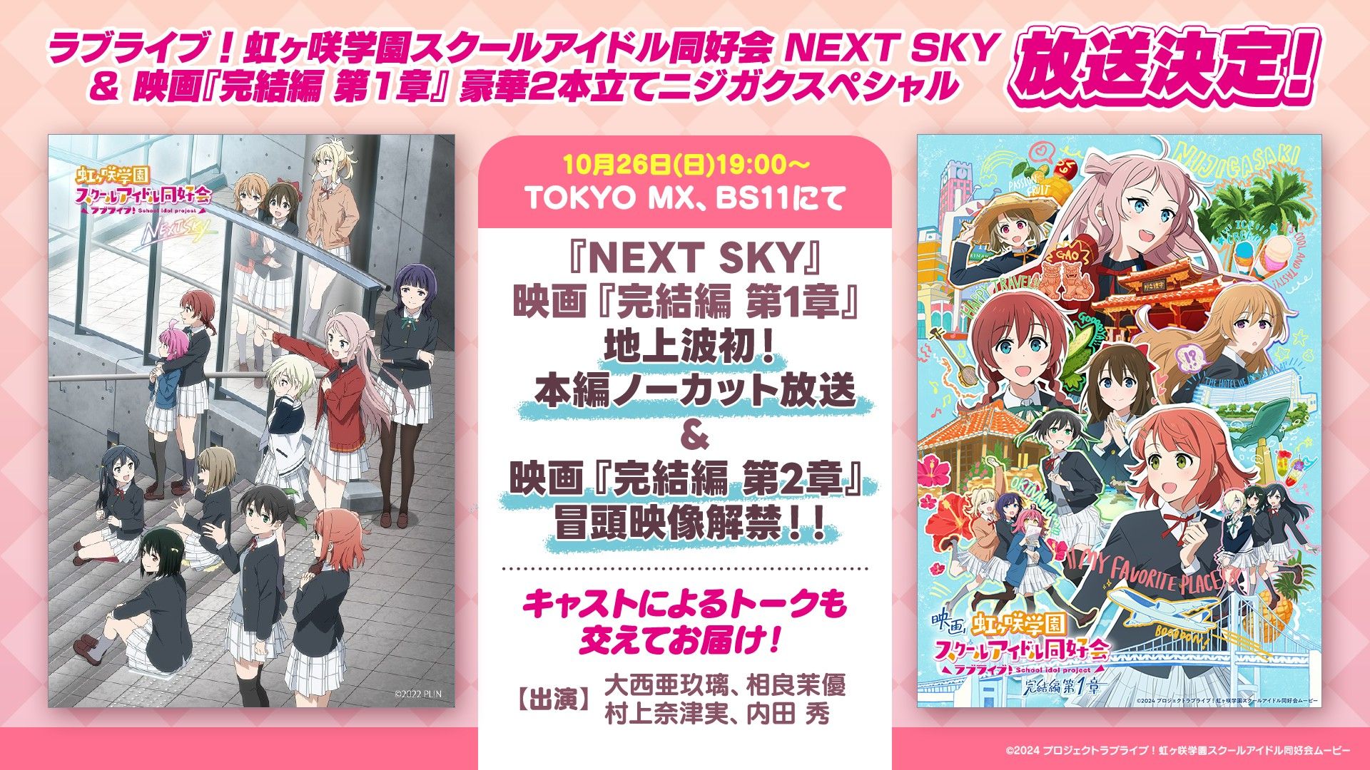 11月7日公開の映画『ラブライブ!虹ヶ咲学園スクールアイドル同好会 完結編 第2章』を記念して、OVA『NEXT SKY』&映画『完結編 第1章』ノーカット・地上波初放送が決定しました!番組内では『第2章』冒頭映像&新情報も解禁!!