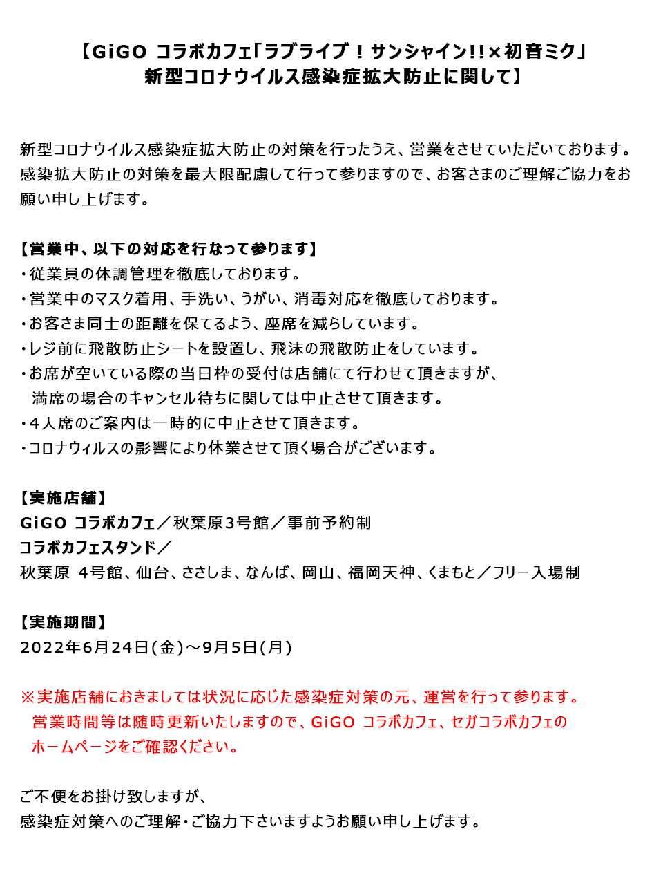 GiGO コラボカフェ「ラブライブ!サンシャイン!!×初音ミク」開催のお知らせ
