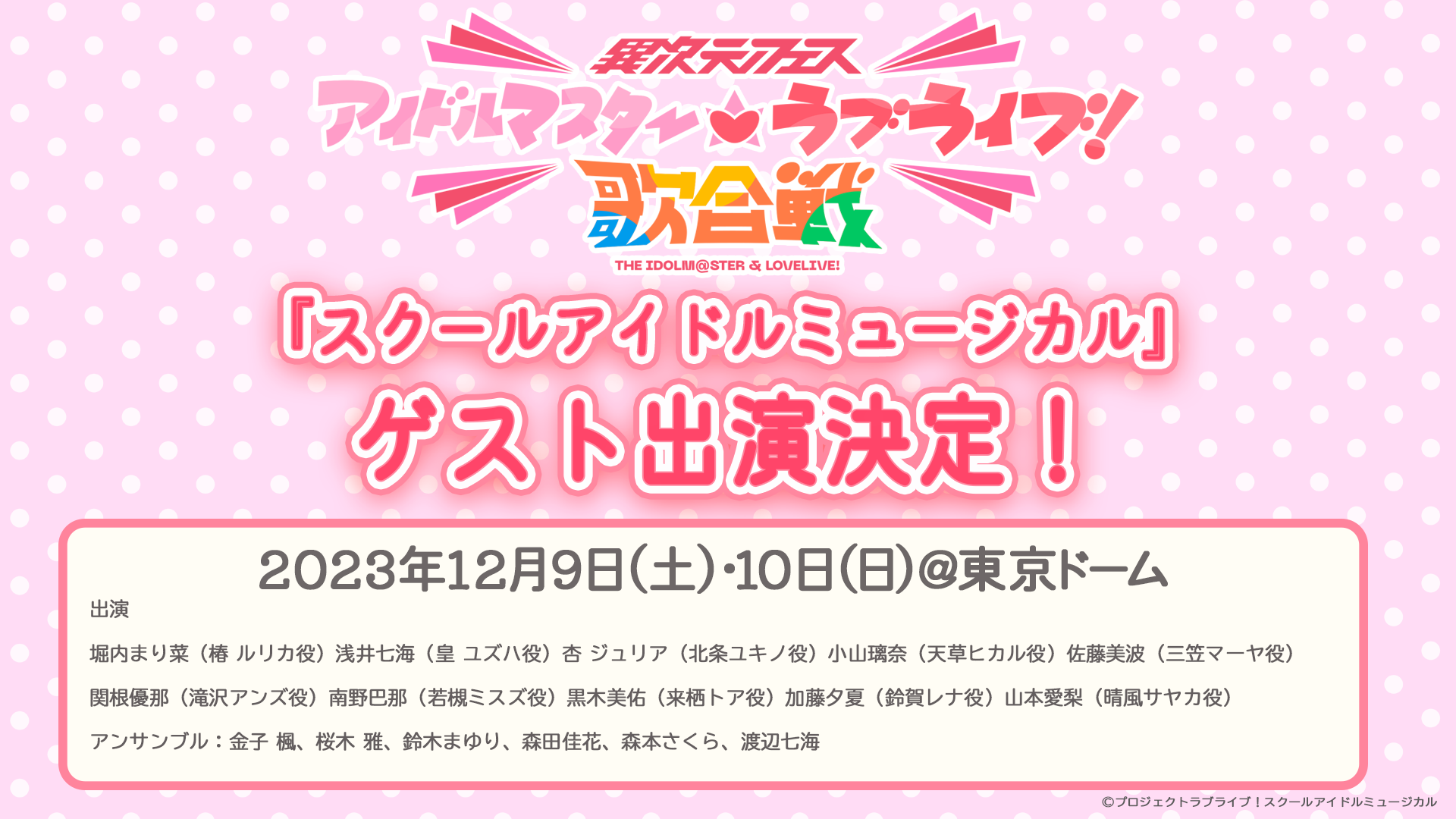 12月9日・10日、東京ドームで開催! 「異次元フェス アイドルマスター★♥ラブライブ!歌合戦」に『スクールアイドルミュージカル』よりゲスト出演決定!!