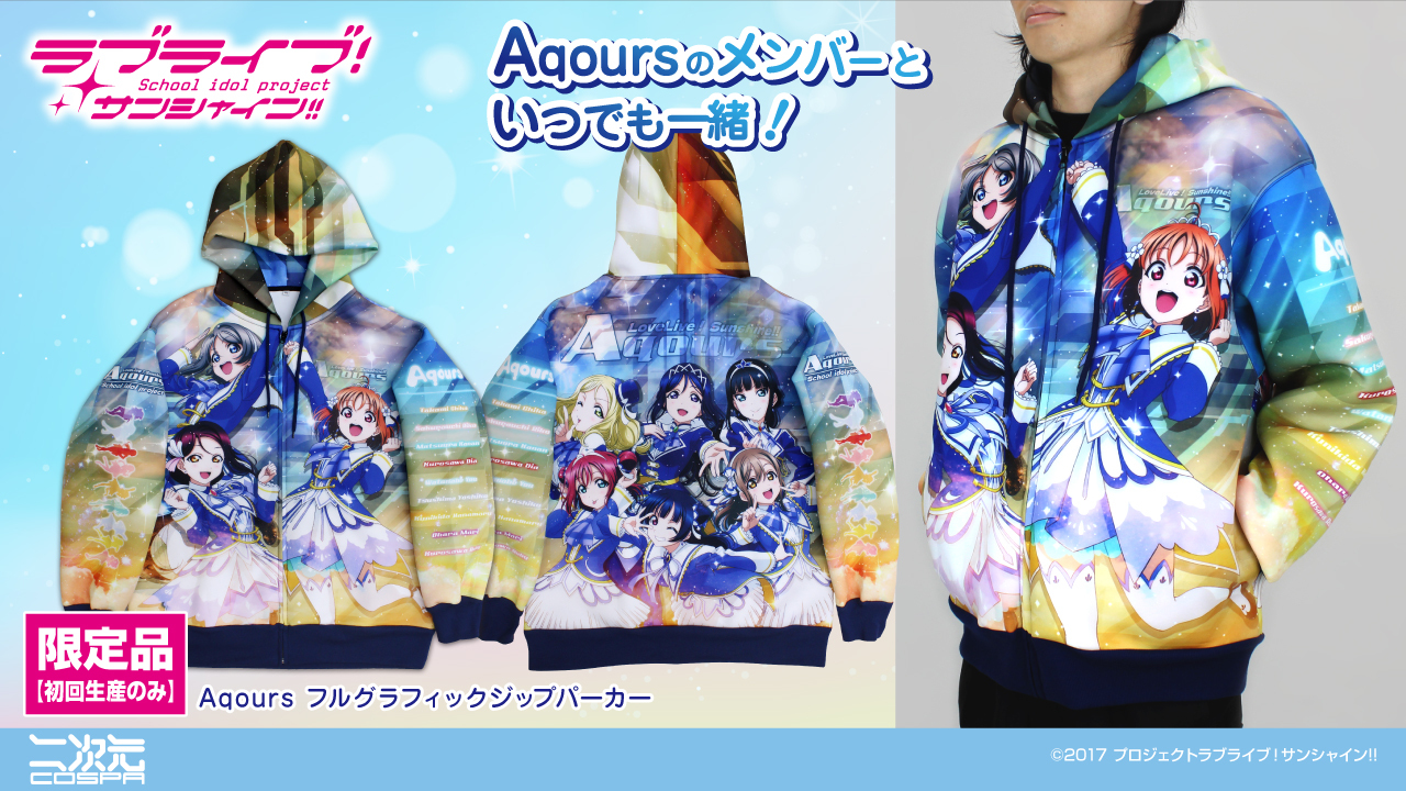 Aqoursのメンバーといつでも一緒!『ラブライブ!サンシャイン!!』初回生産限定「フルグラフィックジップパーカー」が登場!