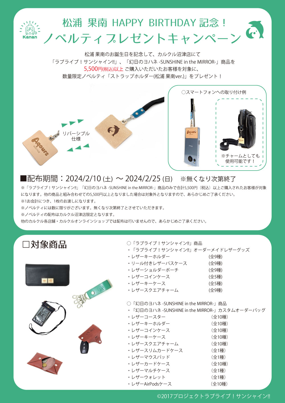 【沼津】ラブライブ!サンシャイン!! &幻日のヨハネプレミアムショップより松浦果南バースデー企画のお知らせ