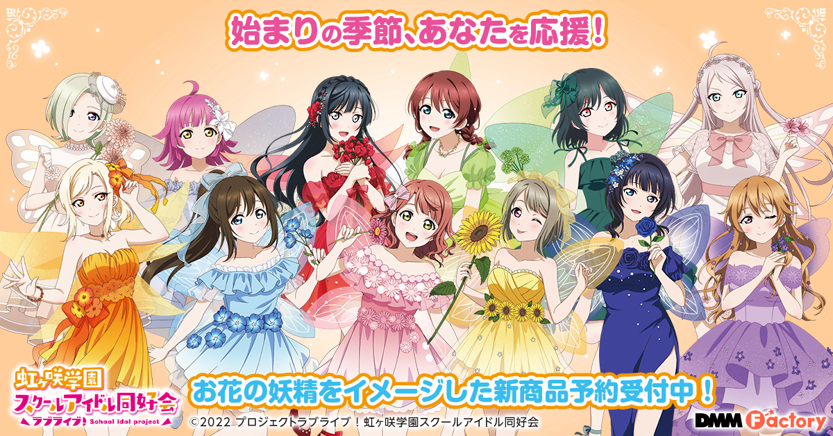 DMM.comより『ラブライブ!虹ヶ咲学園スクールアイドル同好会』お花の妖精をイメージした新商品の発売が決定!