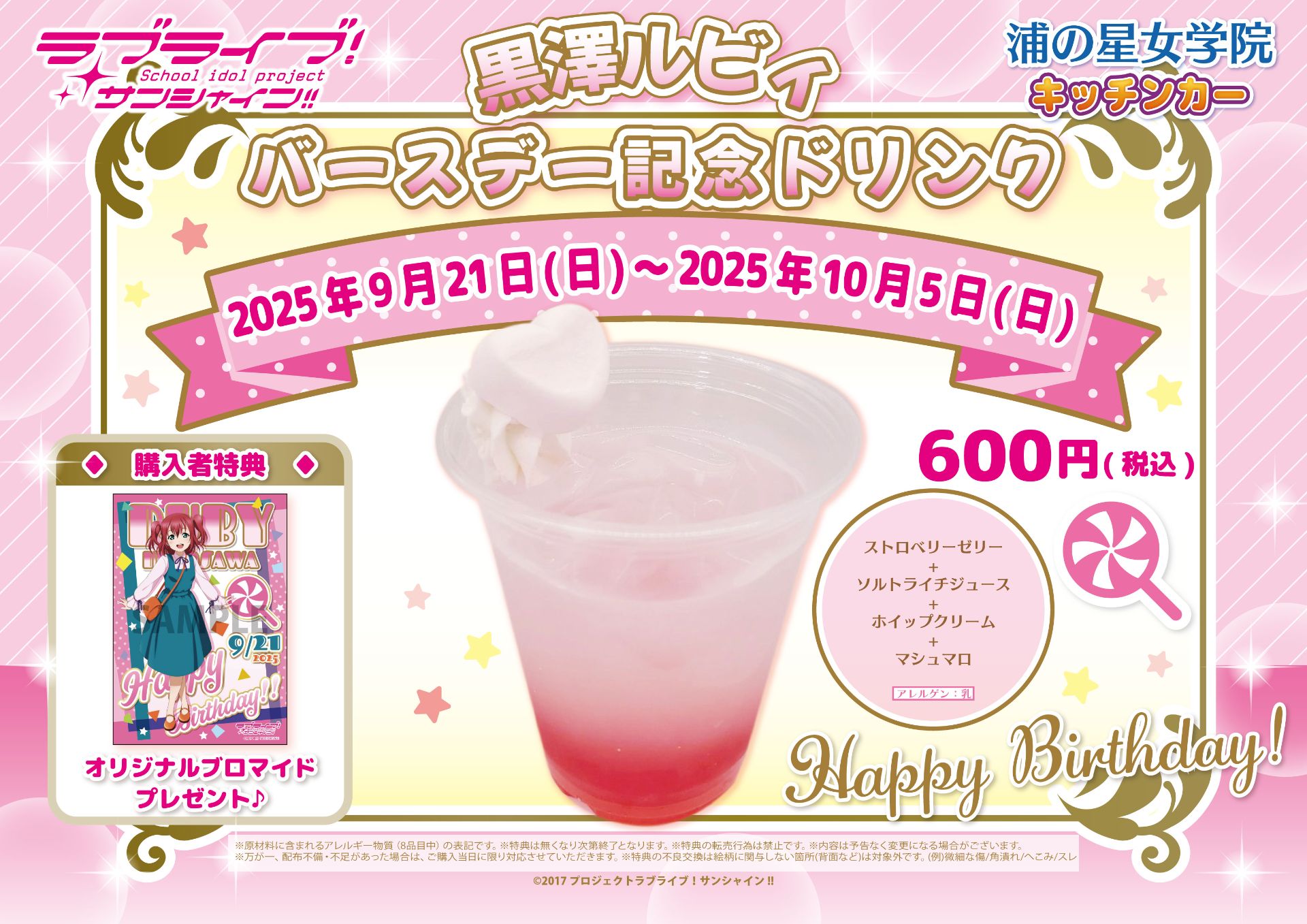 「浦の星女学院キッチンカー」よりバースデー記念ドリンクメニュー販売のお知らせ
