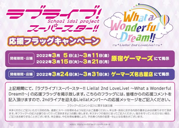 「ラブライブ!スーパースター!! Liella! 2nd LoveLive! ~What a Wonderful Dream!!~」応援フラッグキャンペーンのお知らせ