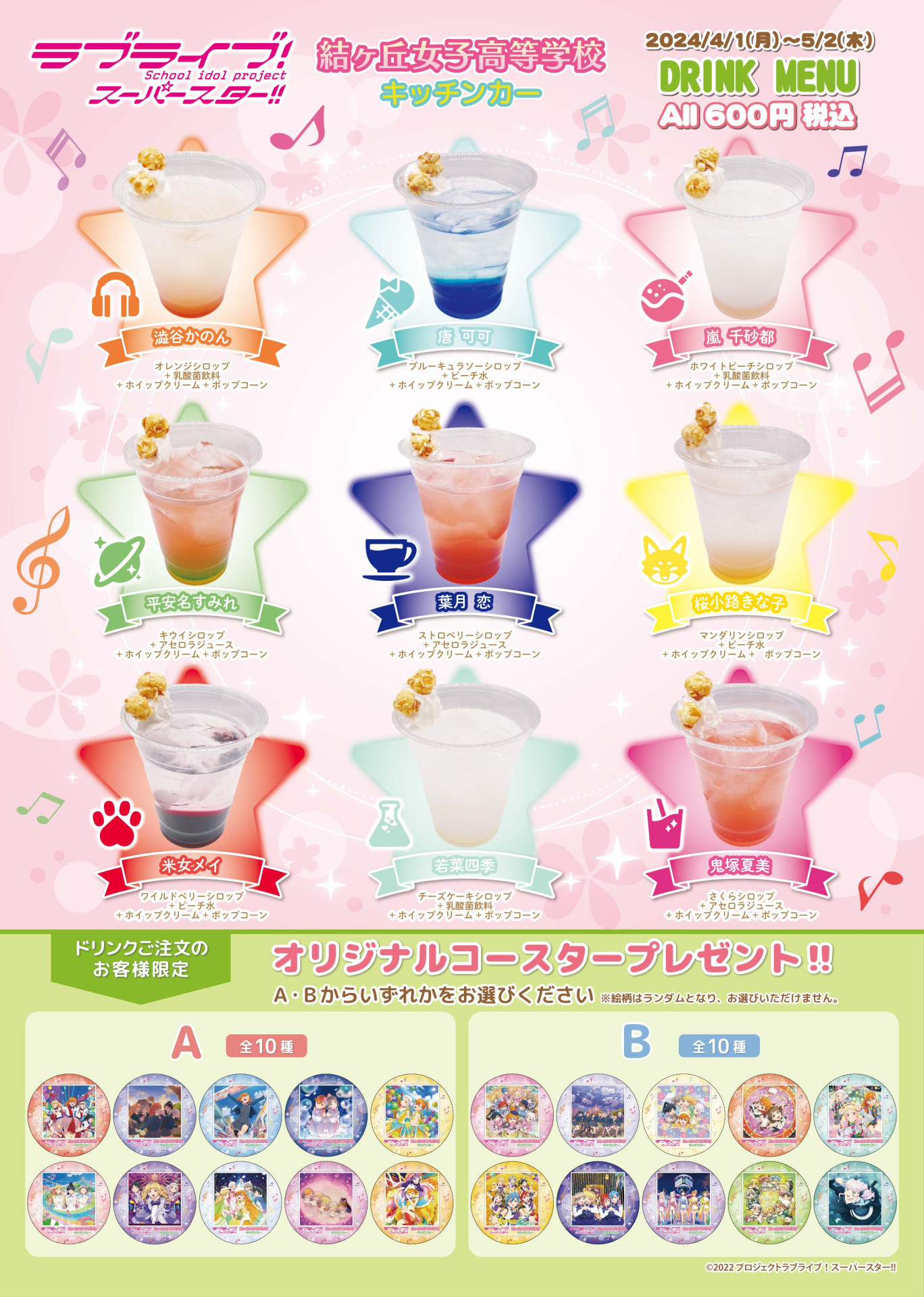 浦の星女学院キッチンカー、虹ヶ咲学園キッチンカー、結ヶ丘女子高等学校キッチンカーより新メニューのお知らせ